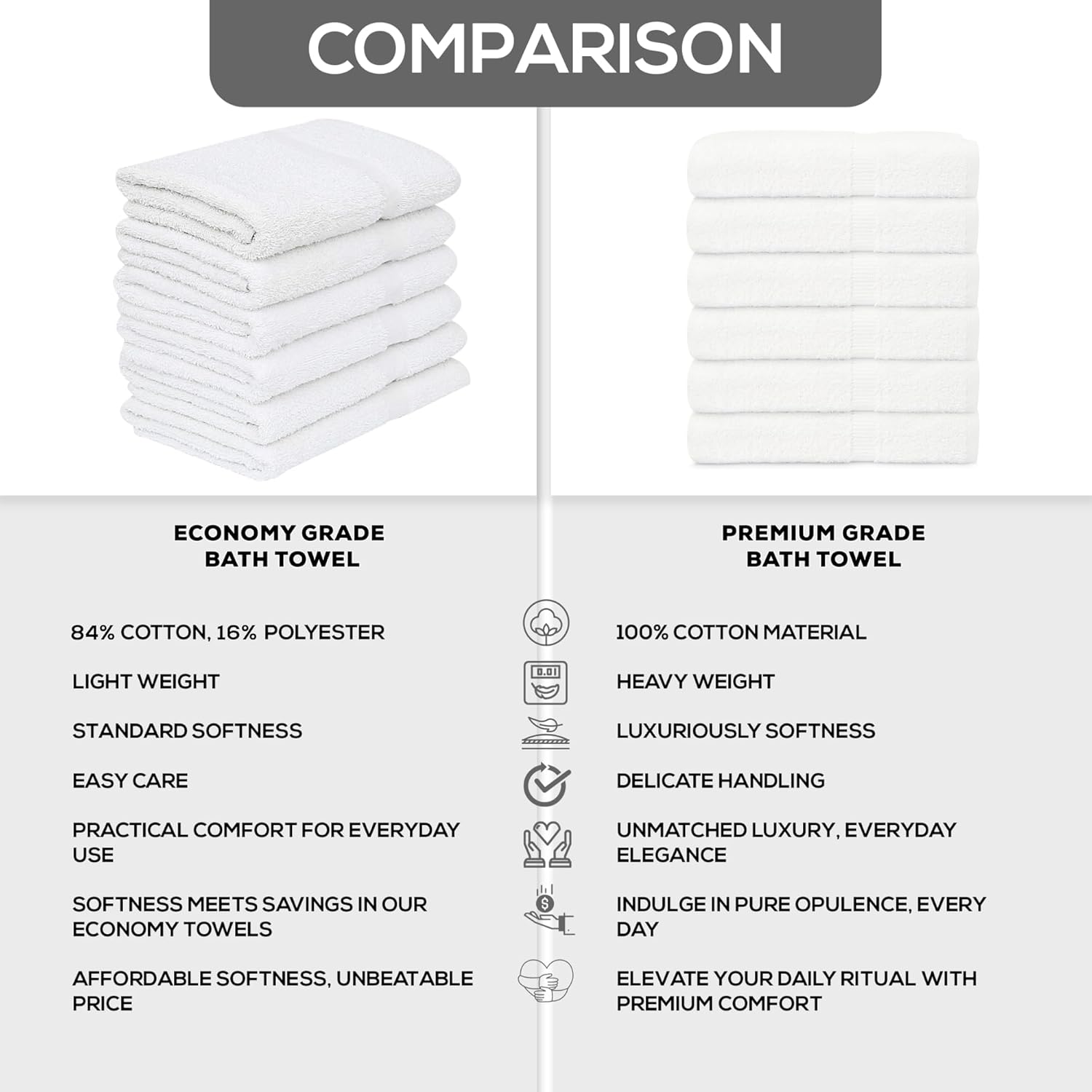 GOLD TEXTILES 12 White Economy Bath Towels Bulk (24×48 Inch) Cotton Blend for Softness-Commercial Grade Easy Care