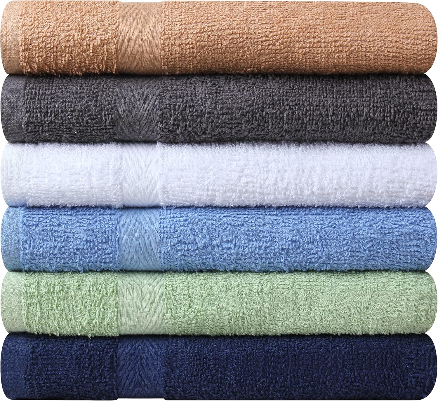 Towel and Linen Mart 100% Cotton 6 Pack Bath Towel Set, Quick Dry, Super Absorbent, Light Weight, Soft, (27 x 54 Pack of 6) Beige, White, Grey, Sky Blue, SAGE Green, Navy