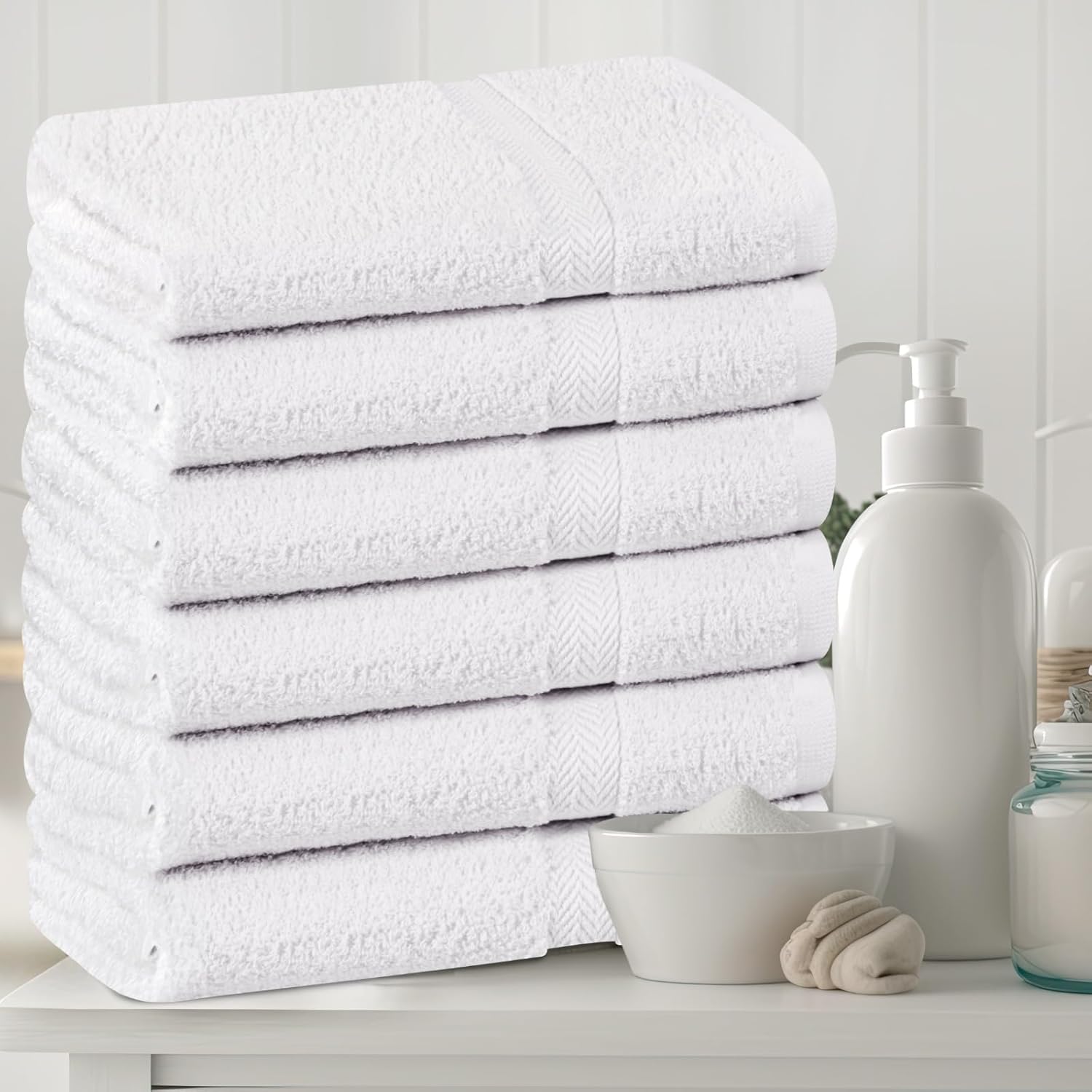 - Set Of 6 Bath Towels – T & L towel and linen mart’s pack comprises White Color of 6 bath towels/pool/gym/spa with double stitched hems, thick and plush makes our bath towel ultra-soft measuring 24 by 48 inches.