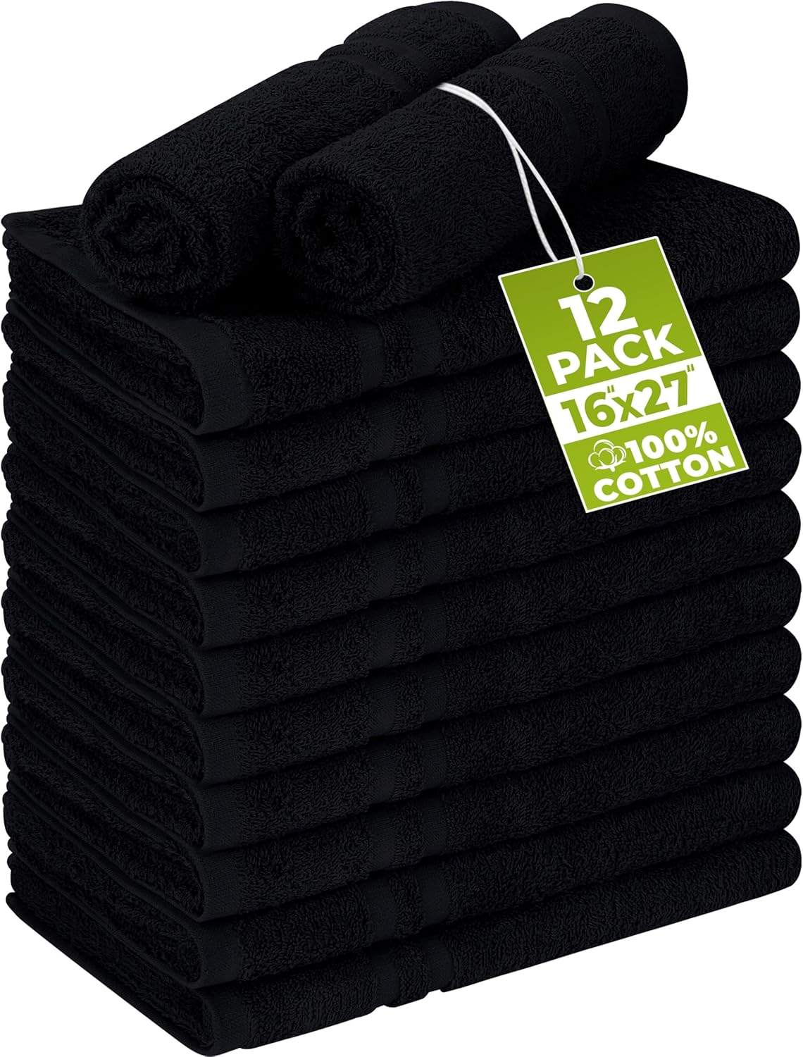 Utopia Towels Cotton Bleach Proof Salon Towel 16 by 27 inches, Bleach Safe Gym 100% Cotton Hand Towel, 24 Pack, Black