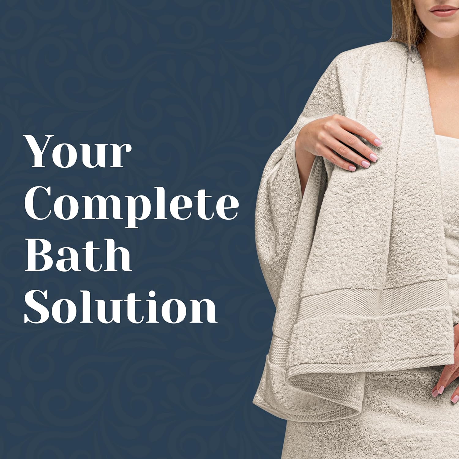 White Classic Luxury Bath Towel Set of 8 Pieces – 100% Turkish Cotton Highly Absorbent Towels for Bathroom, 2 Luxury Bath Towels 700GSM, 2 Hand Towels, 4 Washcloths, Ivory